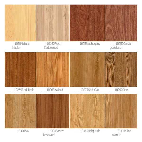 We offer various wood patterns, including oak, walnut, cherry, and pine, with customization options available based on project needs.
